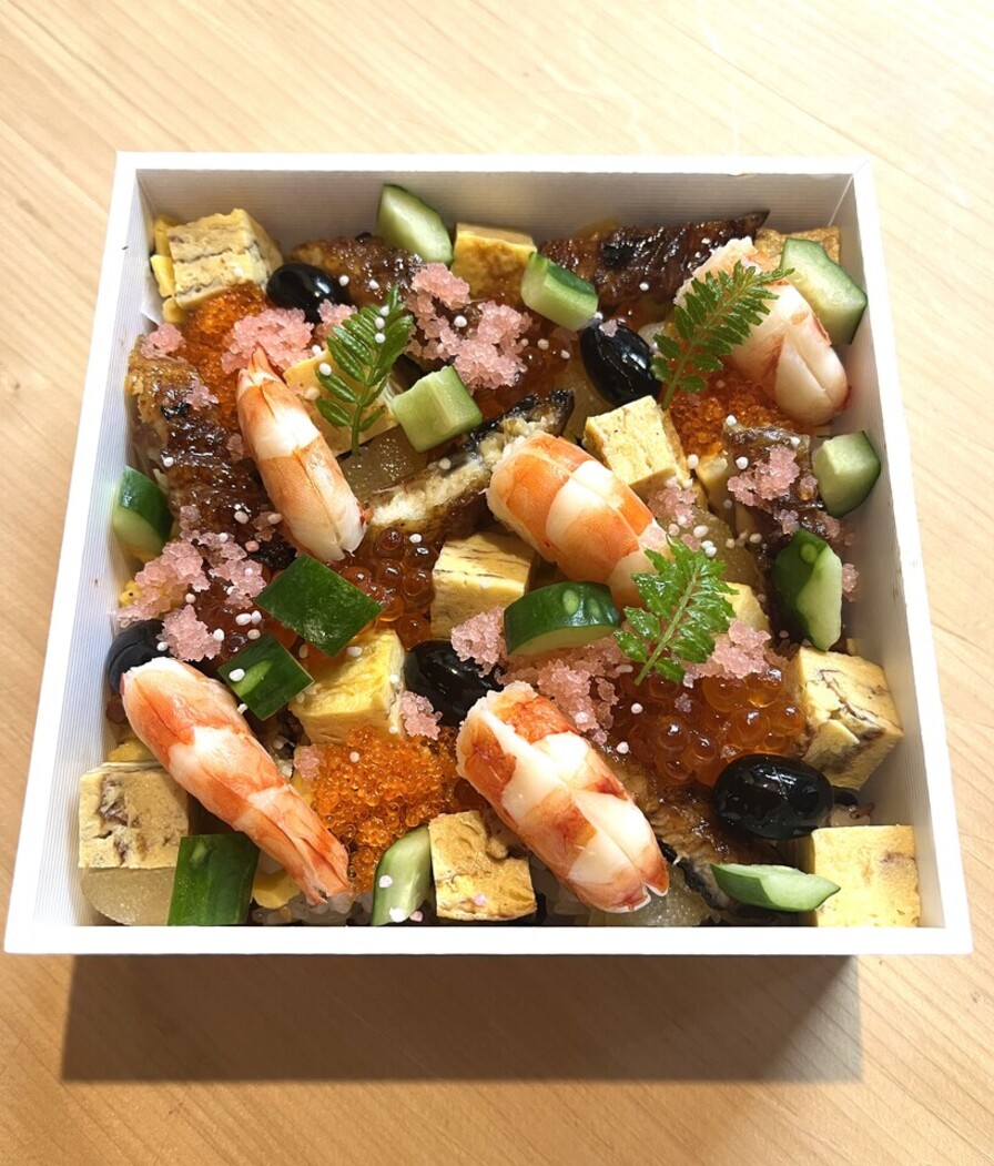 海の幸山の幸を敷き詰めた宝石箱のようなちらし寿司です。